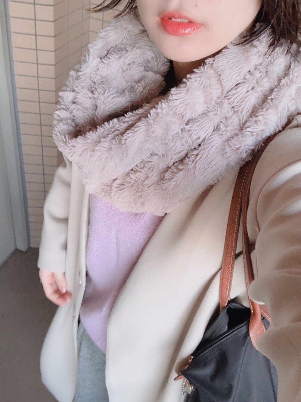 tanacoのストール/ショール「エコファーウェーブスヌード」を使ったコーディネート