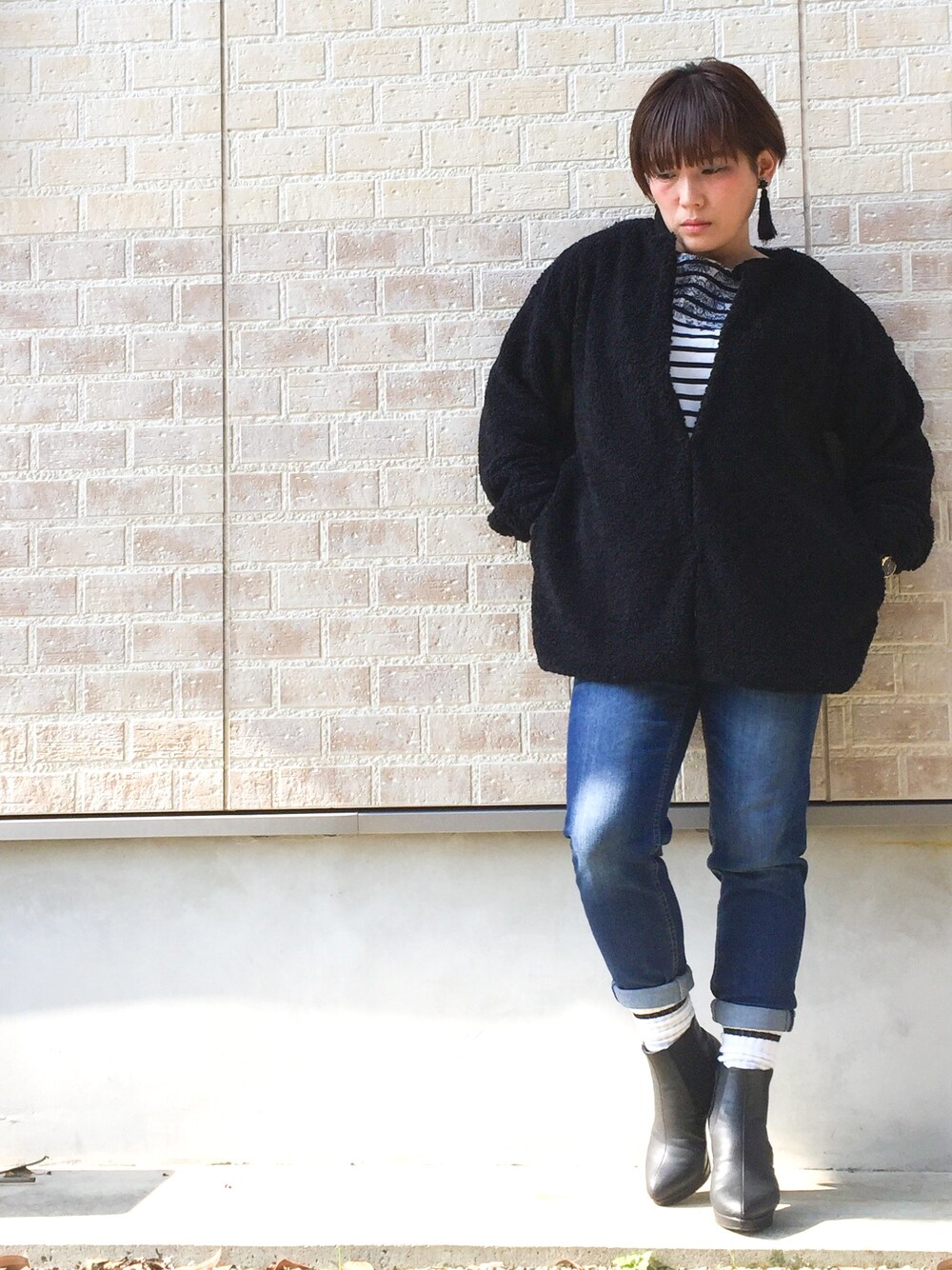 タナ(TSTK)のカーディガン/ボレロ「◆エコファーカーディガン」を使ったコーディネート