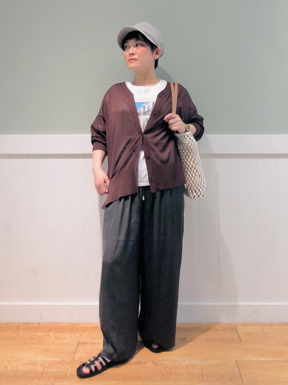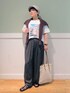 いつもいいね👍お気に入り登録 ありがとうございます😊 今日もラフなカジュアルスタイルの ご紹介です! サテンワイドパンツは1枚あると かなり万能なパンツです! シアーカーディガン合わせで メンズライクなスタイリングです!