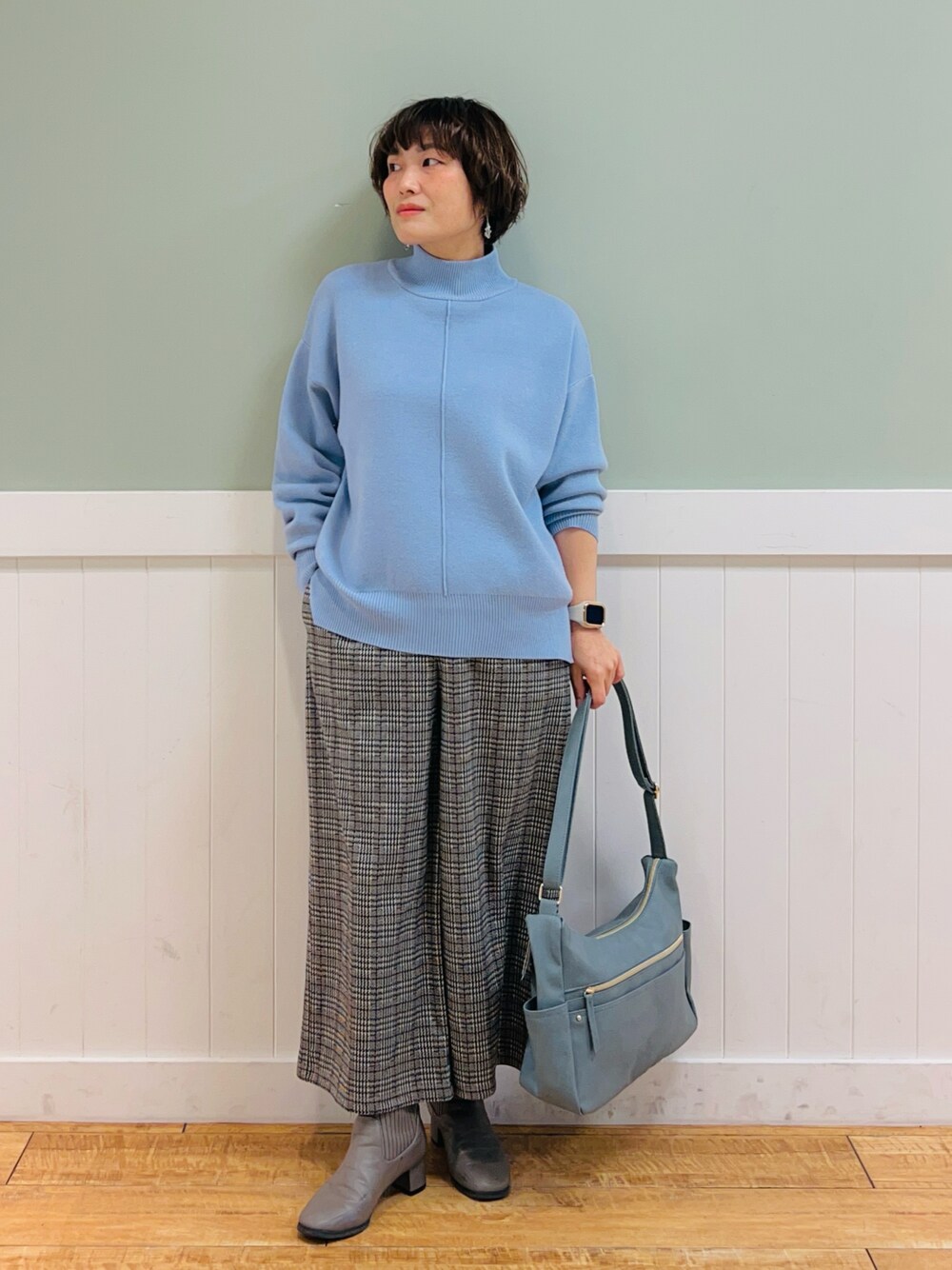 タナ(TSTK)のニット/セーター「【洗える/ちくちくしにくい/静電気軽減】スウェットライク ハイネックニット」を使ったコーディネート