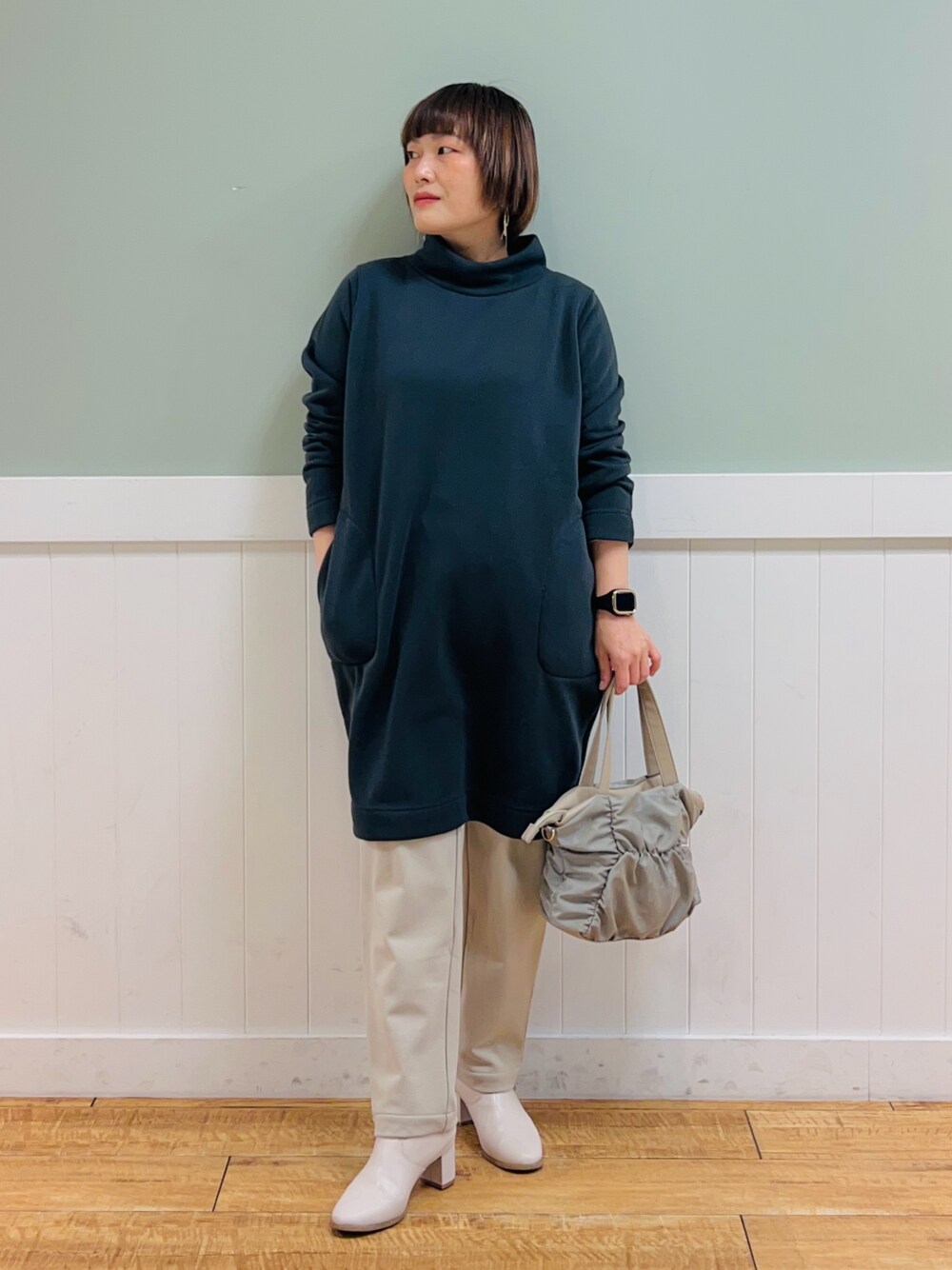 タナ(TSTK)のチュニック「◆【S-LL】裏起毛であったか スタンドカラーコクーンチュニック【SHOO WARM】」を使ったコーディネート