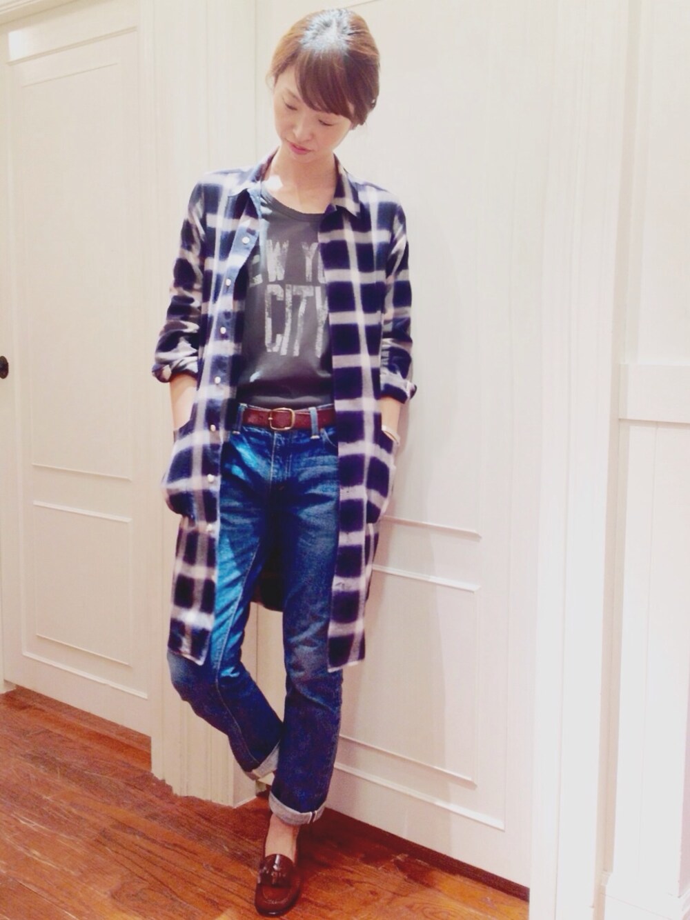 タナカサンのシャツワンピース「ビックチェックワンピース」を使ったコーディネート