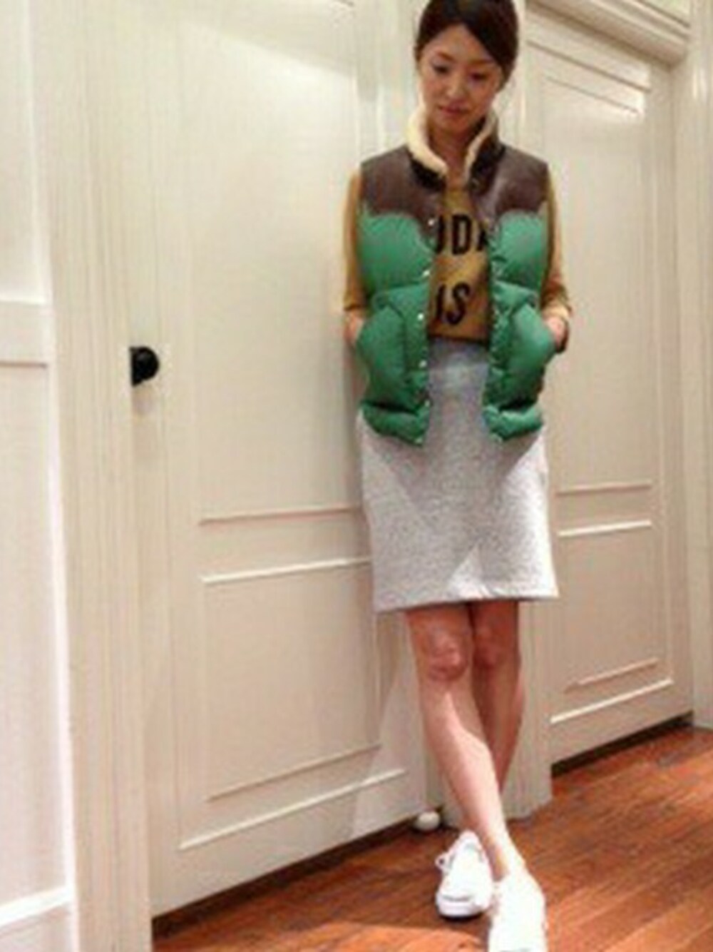 配色がかわいいダウンベストは着心地もいいです。裏毛のタイトスカートは今年マストなアイテムです!