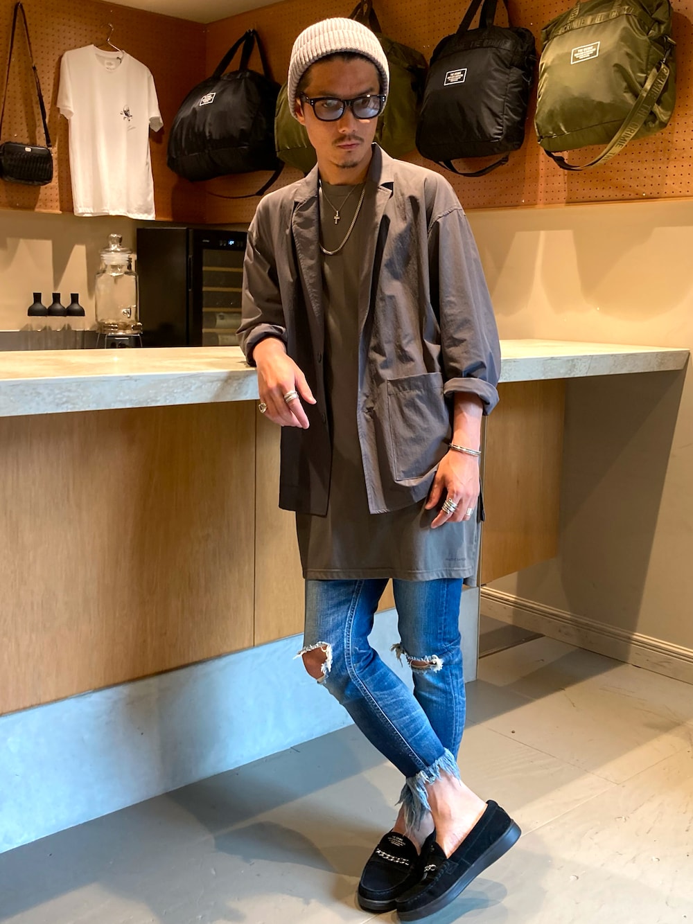 TANAKA (GARDEN CREW)のデニムパンツ「TOMMY CUTOFF DENIM PANTS」を使ったコーディネート