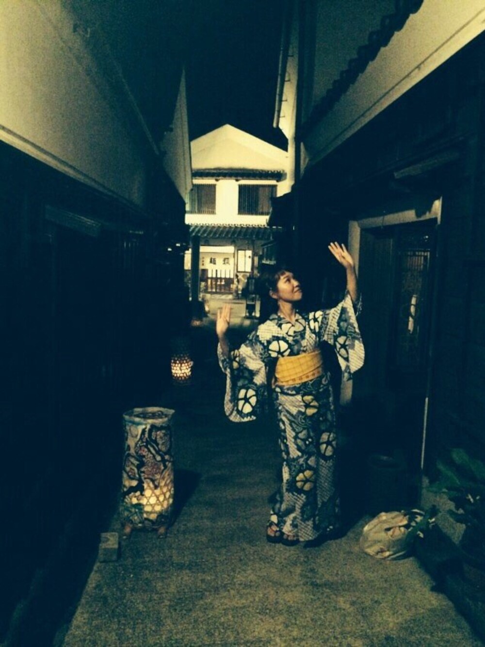 グリーン系の浴衣を着用したレディースの夏コーディネートの1枚目の写真