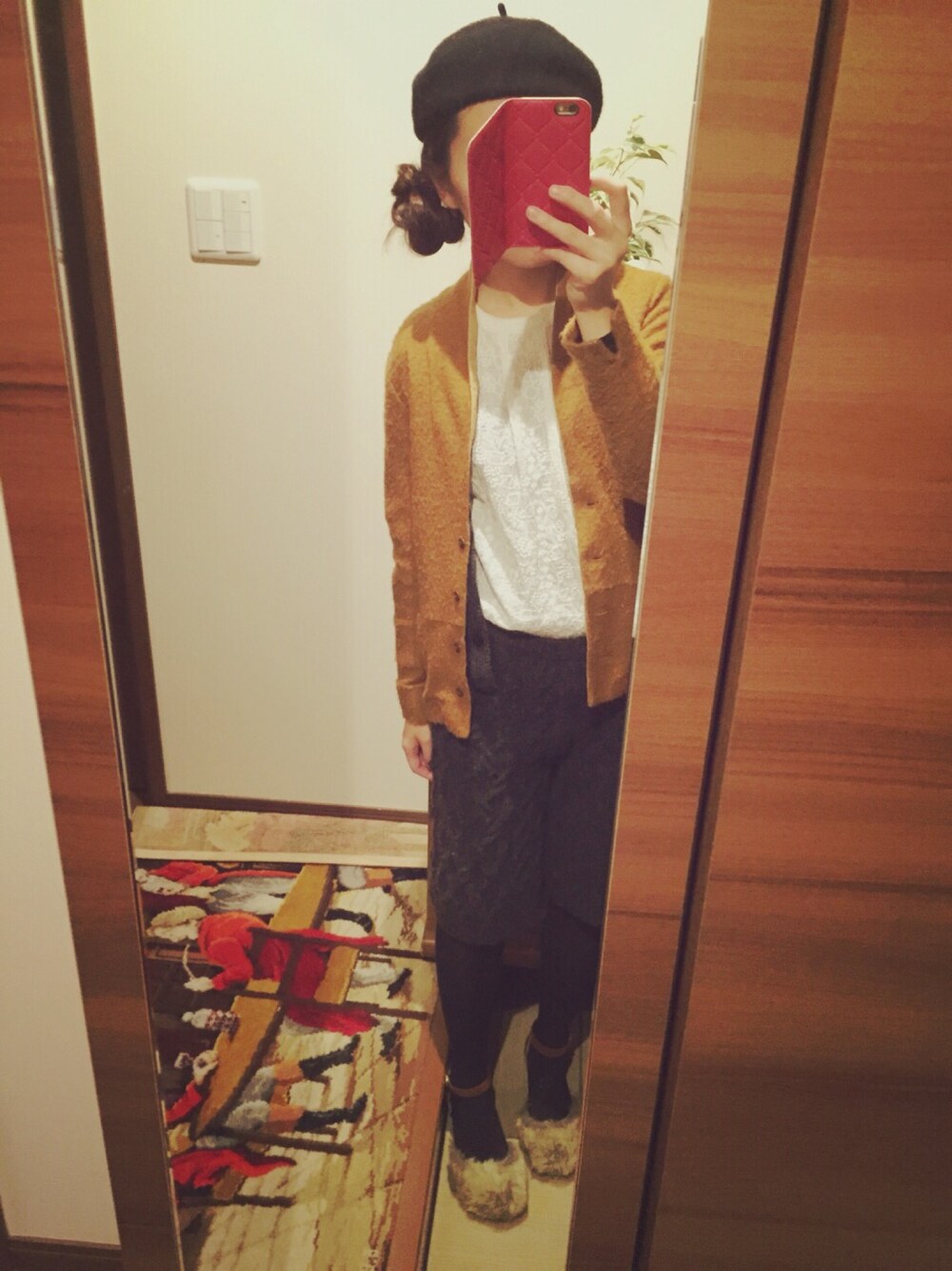 わかりにくいですが、 パンツはグレーニットでもこもこ してます!サスペンダーつき!