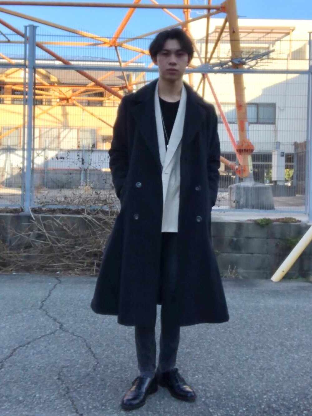 翔のチェスターコートを使ったコーディネート