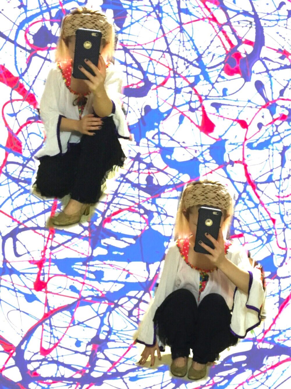 こんばんわ〜❣️ 今日は、もはや夏の格好🌈 真夏でも、エアコンでかえって寒かったりするのでこの程度の軽装しかしないです。 そして楽な格好に👍 パンツもベルトなしで腰ではき、丈の長い分は100均のアームバンドを使ってカバーしています⤴︎ 腕が短いのでアームバンドは必需品なのです〜f^_^; ブラウスのパイピングはサイケ柄で、ニコちゃんまでいますよ☆ ヒモ結ぶ位置によってはオフショルになることを発見! こういう見た目も体感も暑くない形の長袖は大好きで、けっこう持っています。 もうこんな時間! そろそろ寒くなってきました^ ^💦 では本日もご覧頂きありがとうございました😊
