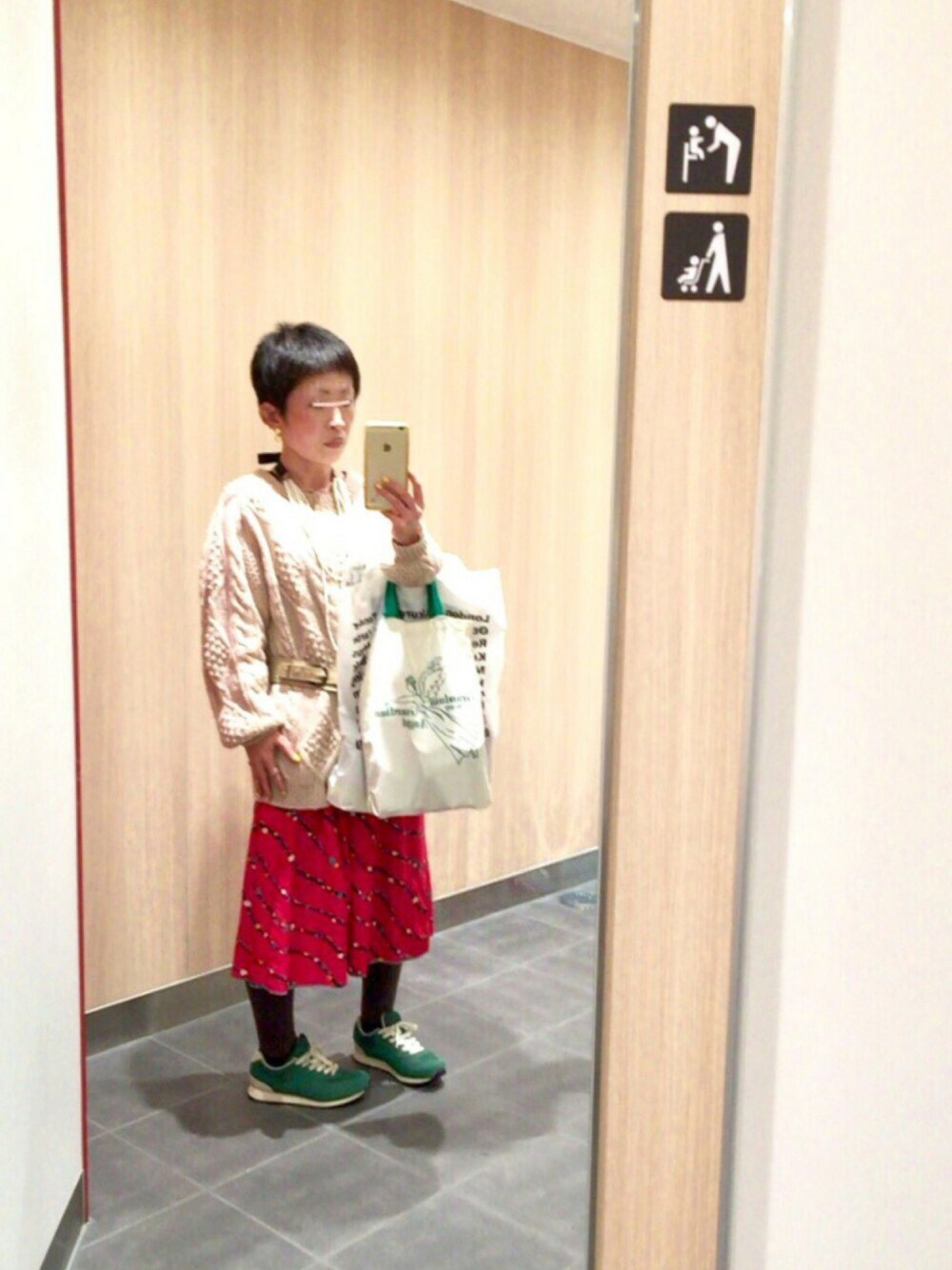 遅くにこんばんわ^^🌙 今日は大好きなワンピースを!写真は帰りなのでニットの袖を下ろしていますが、袖のふりふり見せたくて昼間は袖をひじまでまくったり、暑くなったら小窓のように純一巻きしてました。かなり派手。笑 けれどそれ以上に、何気にクリスマスカラーな事がちょっと恥ずかしかったです。 リングはオモチャ的なのを重ねてみました。 最近にしてはど、が付くガーリーになったと思います😉 ショッパーはフライングタイガーの物。たまたま見つけて初めて入ってテンション上がりお買い物⤴️ ご覧頂きありがとうございました〜❣️