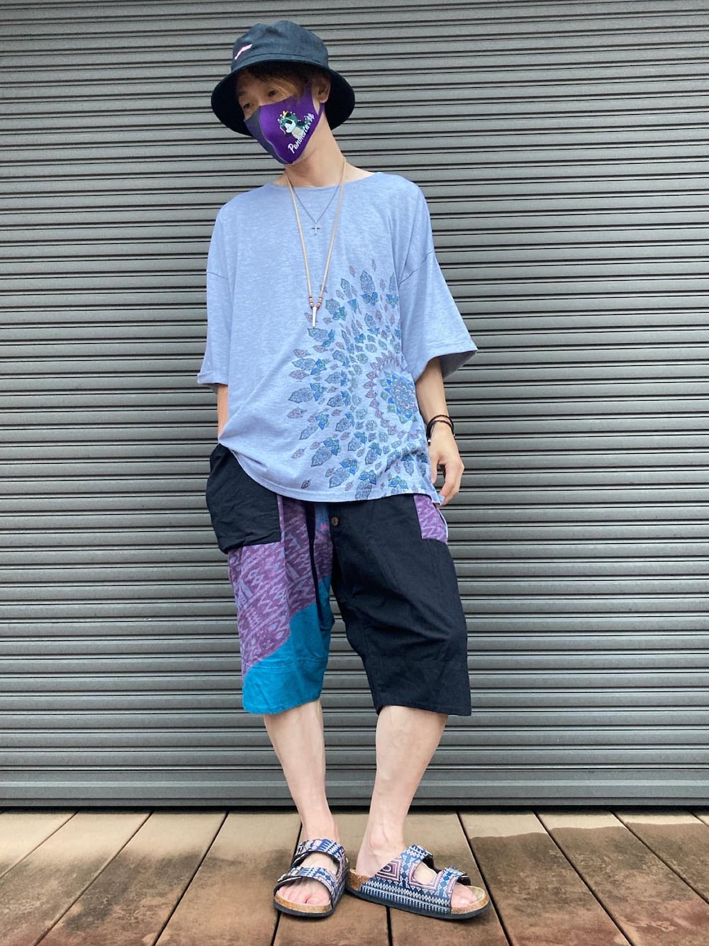 😊🐼おはよう御座います😊 今日は凄く暑くなるそうですね⁉️ 今日のコーデは⁉️ エスニックコーデです❗️ 昨日はシンプルでしたので今日は少し違う感じ🙃にしてみようと思います😃 🐼やってる事は簡単でエスニック系のショートパンツにエスニック系のTシャツです❗️ お決まりの 黒のバケットハットに エスニック系のサンダルです😃🐼 皆様、熱中症🥵に充分きおつけてください❗️ 昨日関連フォルダ📁入れて頂いた方々 大変有り難う御座います🙇♂️本当ありがとうございます😊 ハート♥️インして頂いた皆様ありがとうございます😊