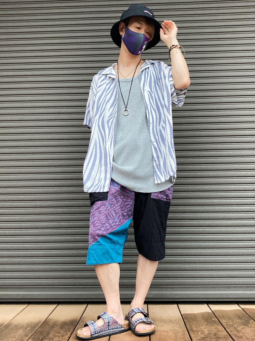 😊🐼今日のコーデ😊🐼❗️ エスニック系コーデ❗️ やってる事は簡単で😊 エスニック系のショートパンツ🩳 グレーのロングタンクトップに シマ柄のシャツ👔😃 エスニック系のサンダル🩴 お決まりの バケハの黒😊 関連フォルダ📂入れて頂いた方々 大変ありがとうございます😊 めっちゃ嬉しいです😃😆😂 ハート♥️インしてくださる皆様 ありがとうございます😊 少し忙しいので、お返し出来なかった方申し訳ありません🙇♂️出来る限りお返しします🙇♂️