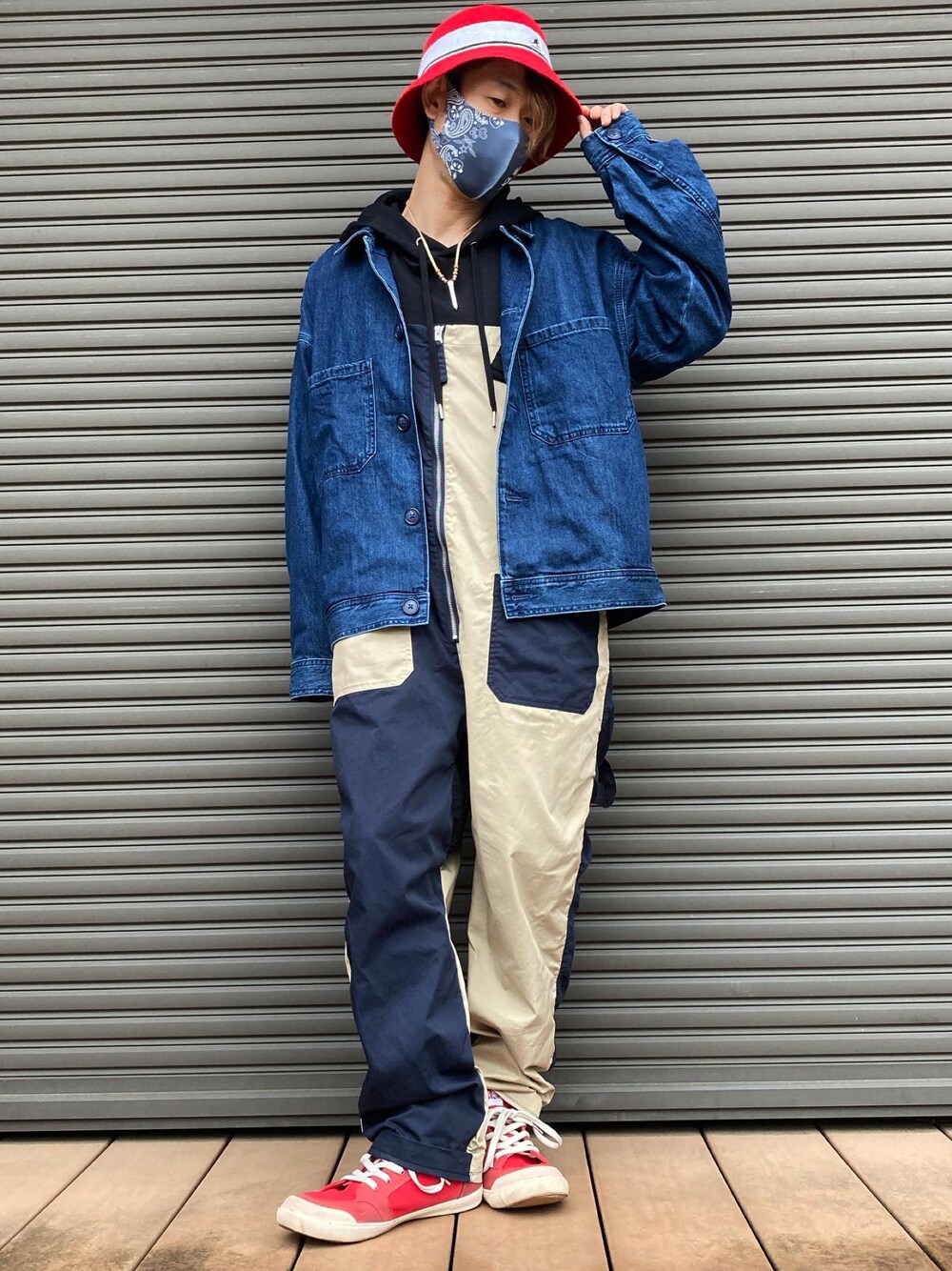 😊🐼おはよう御座います😊 今日のコーデ❗️ 😊ツートンカラーのオーバーオール😊に 五分袖黒のパーカー⚫️ デニムシェフジャケットを羽織りました😊🐼 またもや、トップスはguです😊 差し色は サンドイッチで赤🔴 です😊🐼 前回 関連フォルダ📁して頂いた方々 大変有り難うございました😊🐼 とっても嬉しいです😃😆😆 感謝です🙇♂️ ハート♥️インして頂いた方々 ありがとうございます😊