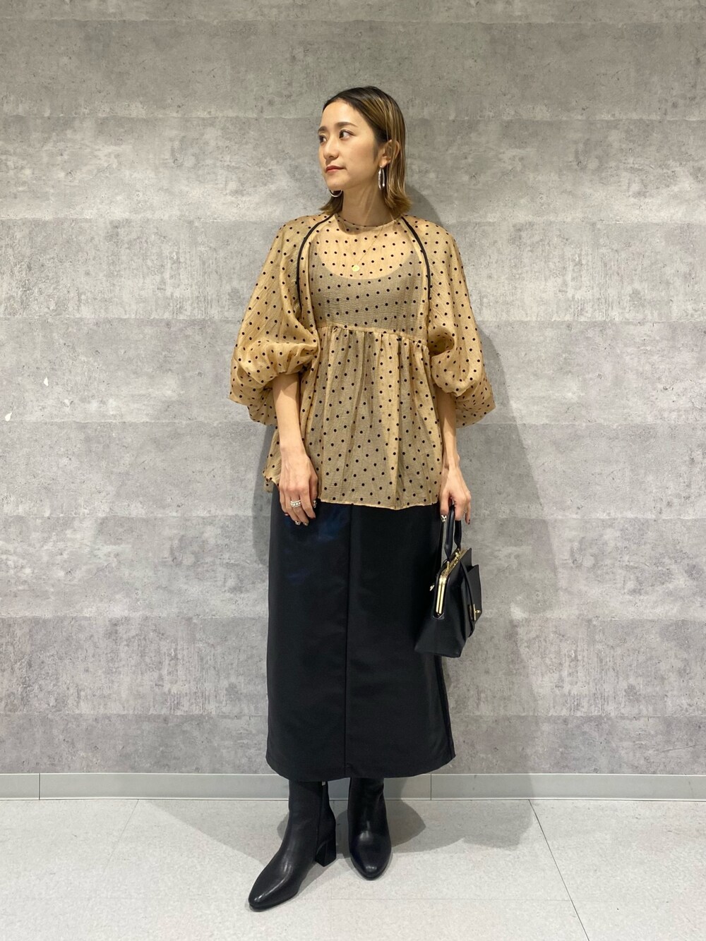 たねこ(ルージュ・ヴィフ ラクレ 梅田阪急三番街店)のブーツ「【最高ブーツ/5.5cmヒール】スクエアトゥブーツ」を使ったコーディネート