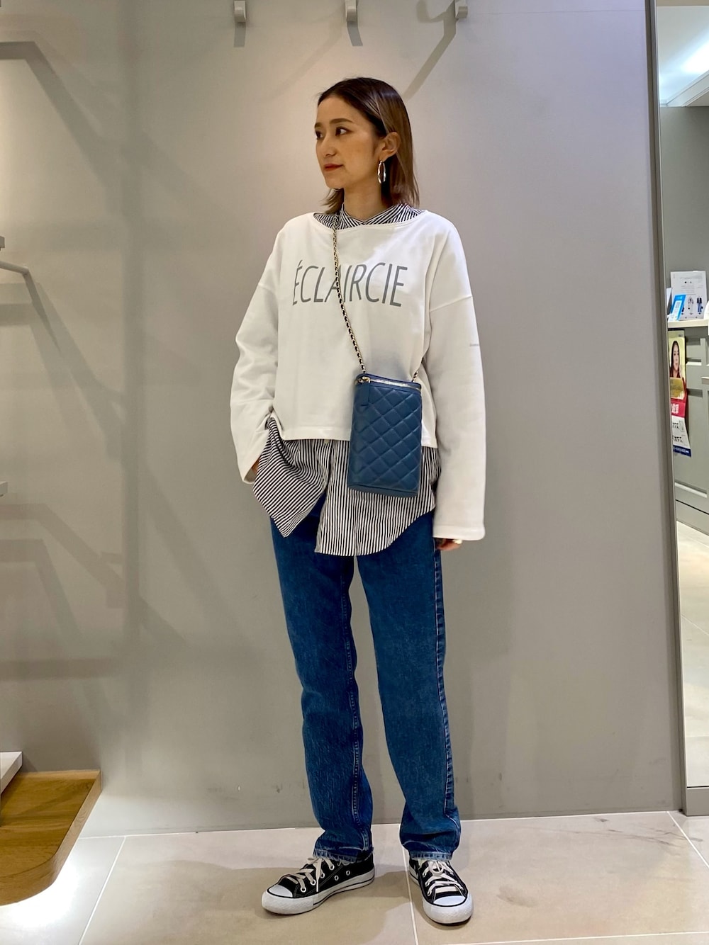たねこ(ルージュ・ヴィフ ラクレ 梅田阪急三番街店)のTシャツ/カットソー「ショート丈ロゴミニ裏毛ロンT」を使ったコーディネート
