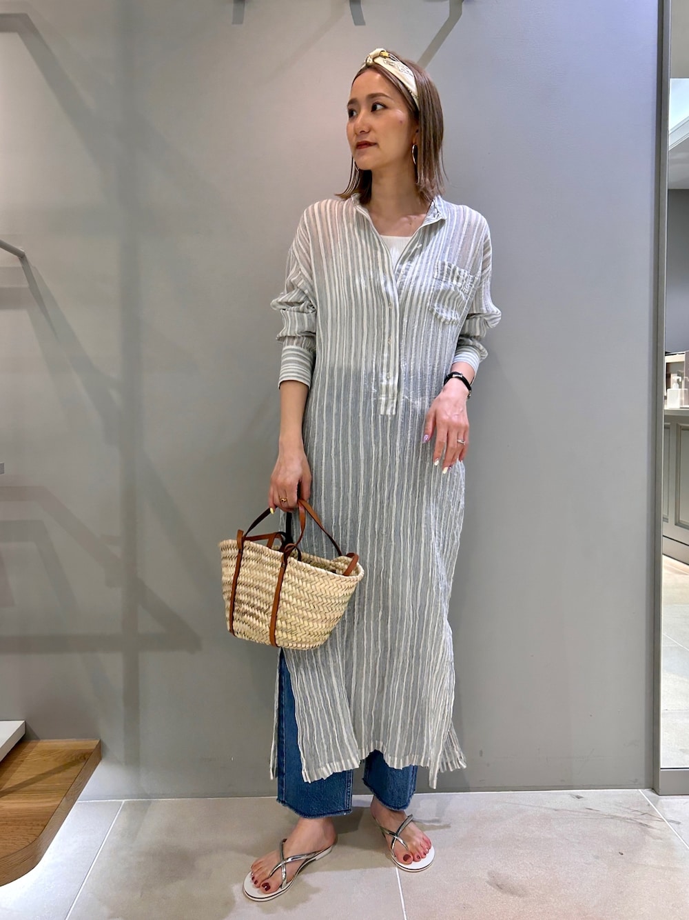 たねこ(ルージュ・ヴィフ ラクレ 梅田阪急三番街店)のワンピース「シルク混シアーストライプ楊柳ワンピース」を使ったコーディネート