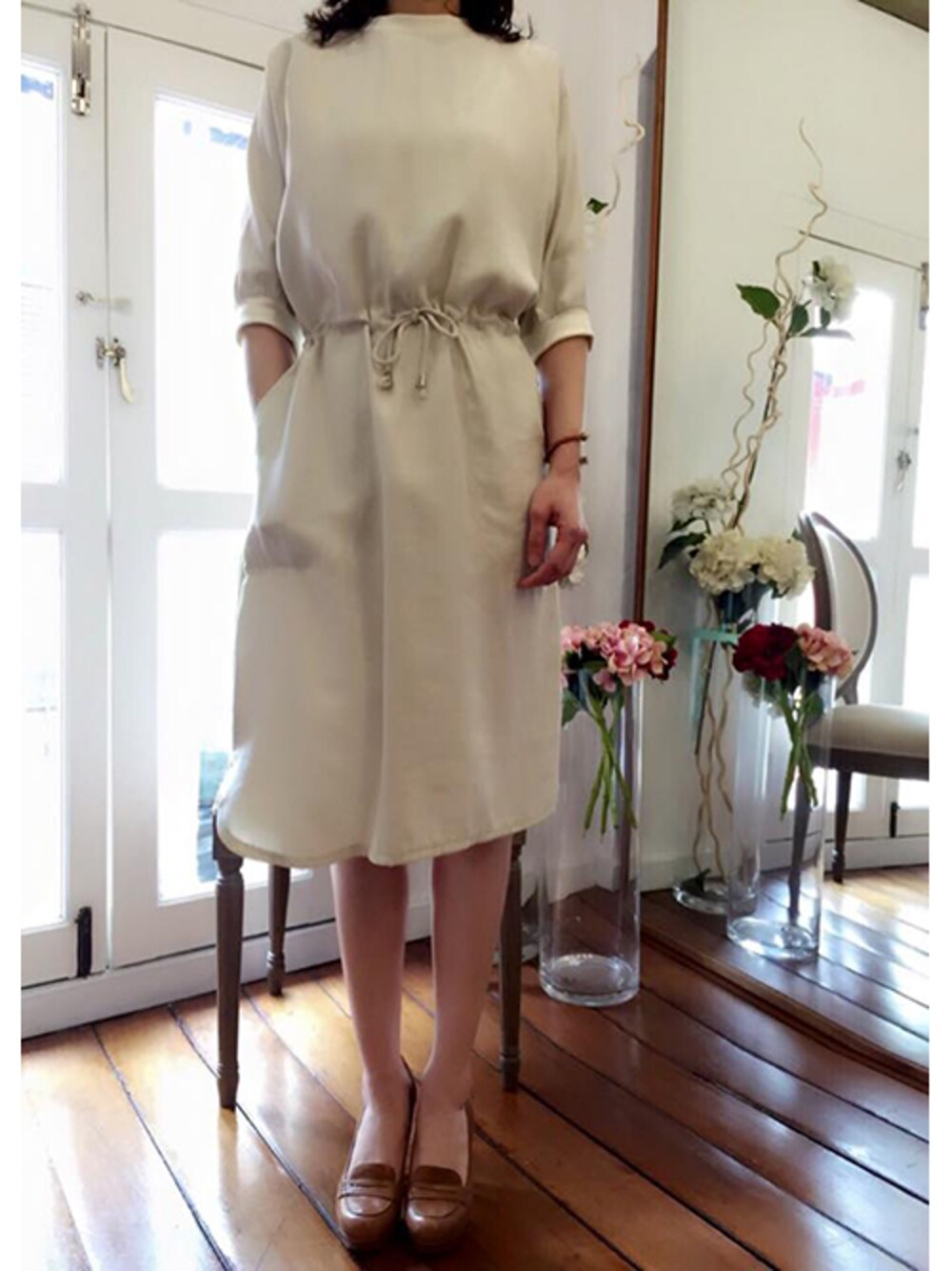 tangersのワンピース「Ribbed Collar & Cuffs Drawstring Dress」を使ったコーディネート