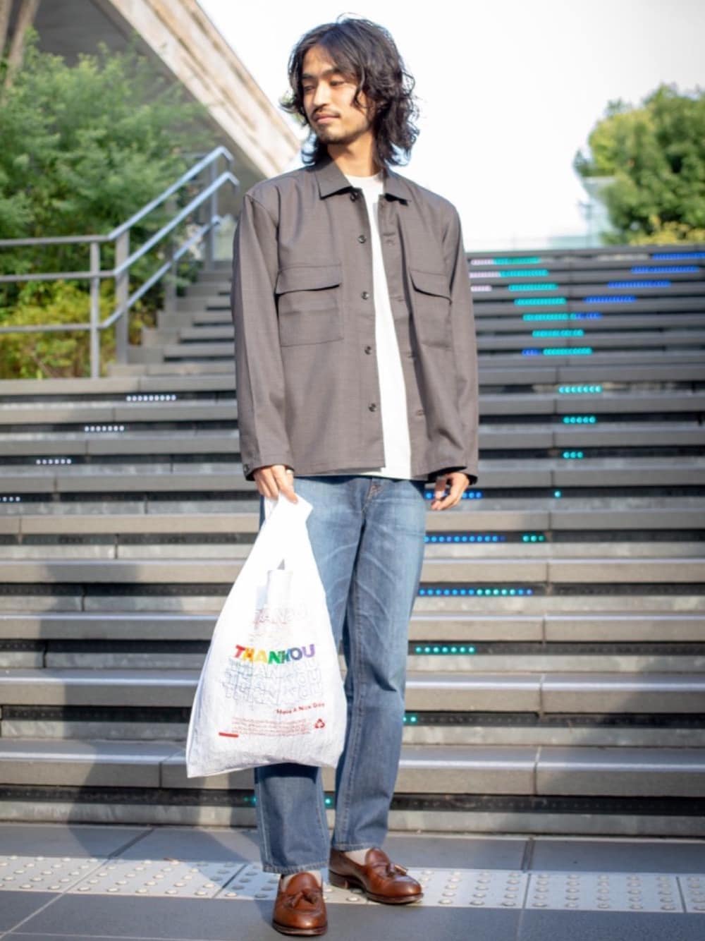 Size//全てSサイズ (身長169cm) 季節の変わり目に最適なデニムをメインに合わせたコーディネートです! デニムは生地もシーズン問わず履きやすいだけでなく、色味も青いものにすると白のシンプルなTシャツから初秋の重たい色味まで幅広く合わせることが出来るので一本持っておくと間違いないオススメのアイテムです! 今回合わせたシャツは両胸に大きなポケットが付いておりますので羽織りとしても一枚着としてもお使いやすいのでオススメの一着です。 手元のバッグは色味が多いのでシャツを脱いだ際もシンプルになりすぎないのでこの季節は使いやすいかと思います!