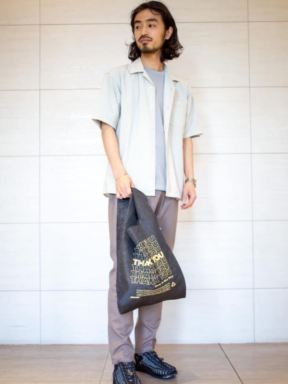 【身長:169cm】【サイズ:全てSサイズ】 グラミチのパンツにキーンのサンダルとアウトドアコーディネートですが、全体的に生地感や色味をキレイめにまとめました。キーンはリフレクター素材の別注な点もポイントです。