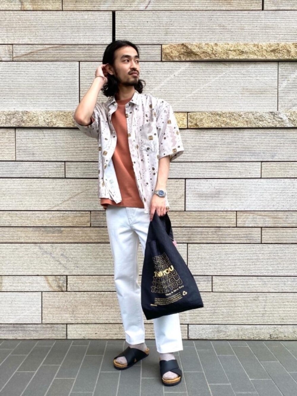 【身長:169cm】【サイズ:全てSサイズ・シューズ41】 合わせづらいイメージの強い総柄のシャツもTシャツと色味を合わせることで一気にまとまりが良く落ち着いた印象で着こなせます。 小物は黒で統一して落ち着いた印象にしています。