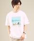 【身長169cm】 jonas claessonのプリントTシャツを主役にした大人カジュアルコーディネートです。夏らしい大判のプリントTシャツですが、シャツの色味を合わせて足元はレザーシューズにすることで全体としては程よく落ち着いた雰囲気になるようにしました。