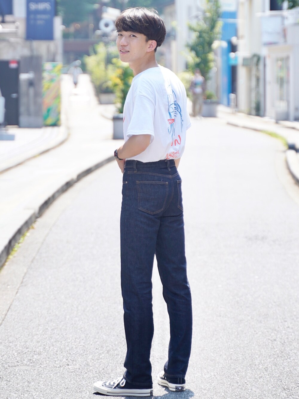 いつも見て頂きありがとうございます😊 ◎スーベニアTシャツ ◻︎デニムに白Tの王道スタイルにTシャツで個性を出しました。 ◻︎白Tは今流行りのスーベニアTシャツです。これはLAにある上海料理屋WoonのおみやげTシャツです。どんぶりを被った髪がラーメンの女の子のバックプリントが可愛いです。 ◻︎パンツはUNIQLO新作のスリムストレートハイライズジーンズです。このデニムは程よくストレッチがきいていて、細いのに楽に履けてびっくりします!それでいてストレートのラインは綺麗に残っていて、脚長効果があり、いいとこ取りのデニムです…!こんなデニムを待っていた!っていう方も多いのではないでしょうか😊 t-shirt:#unitedarrows pants:#uniqlo shoes:#converse ☆今回着用してるスリムストレートハイライズジーンズ含むUNIQLO新作のジーンズ4種類の徹底比較動画をYouTubeにアップしましたので、覗いてみて頂けると嬉しいです🙇♀️ ※プロフィール画面のインスタのアイコンの隣のアイコンから飛べます! Instagram👉@tani0909_ StyleHint👉@tani0909_ YouTube👉TANIQLO Channel