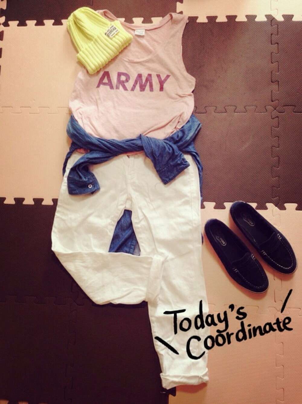 トップス:Champion ボトムス:UNIQLO シャツ:earth music&ecology シューズ:TOPSIDER 最近ヘビロテ中のUNIQLOのホワイトデニム♡