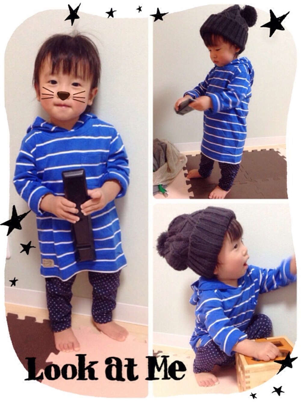 トップス:NEXT ボトムス:UNIQLO ニット帽:ママの おニューのトップス☻ 大きいの買いすぎてワンピースみたいになっちゃった(笑)