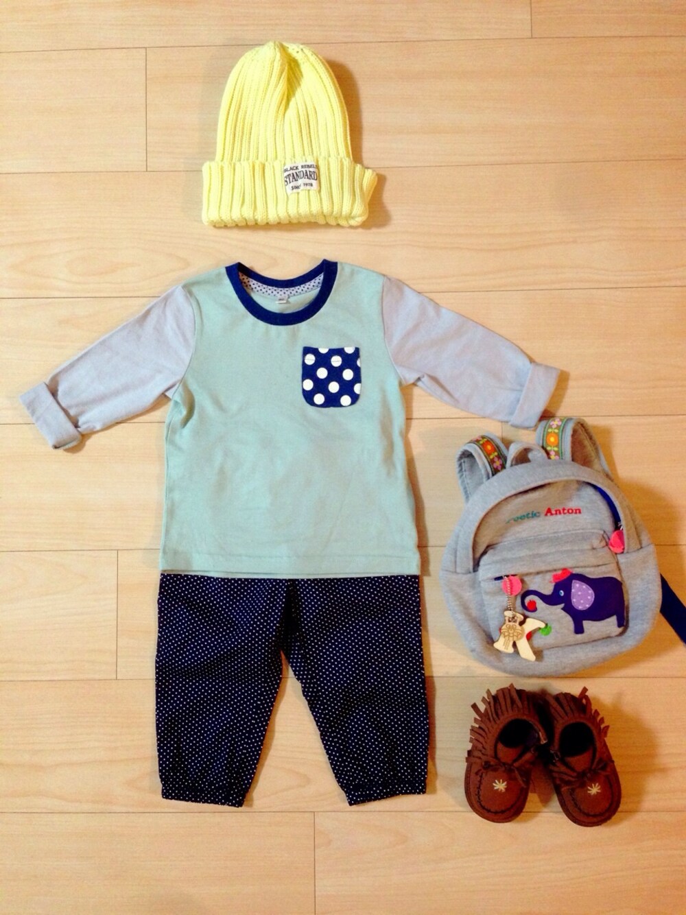 坊ちゃんは今日も元気に保育園へ( •̀ .̫ •́ )✧ GAPのパンツ実は女の子用だけどいい感じだ♡