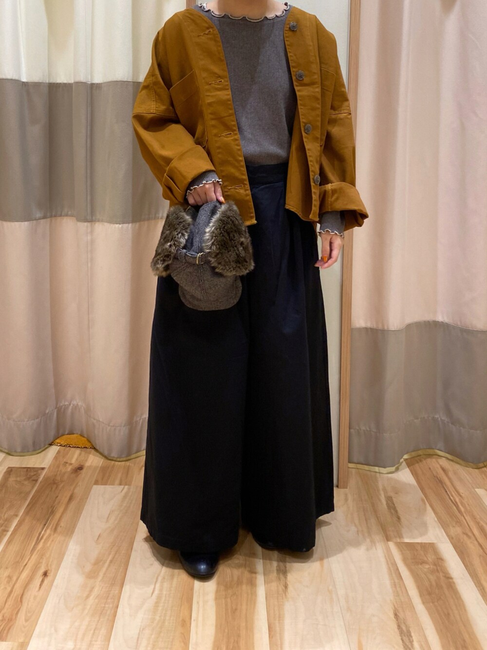 ご覧くださりありがとうございます🐰 今回は大人っぽいコーデに仕上がりました☺️✨ ジャケットは秋らしいカラーで襟を抜いて着ると ぽわんとしたシルエットが可愛いです🎃🎶 パンツもワイドながらすっきりしたシルエットに なるのできちんと感が出ておすすめです💐 ノベルティフェア開催中です❣️ ぜひ御来店お待ちしております!