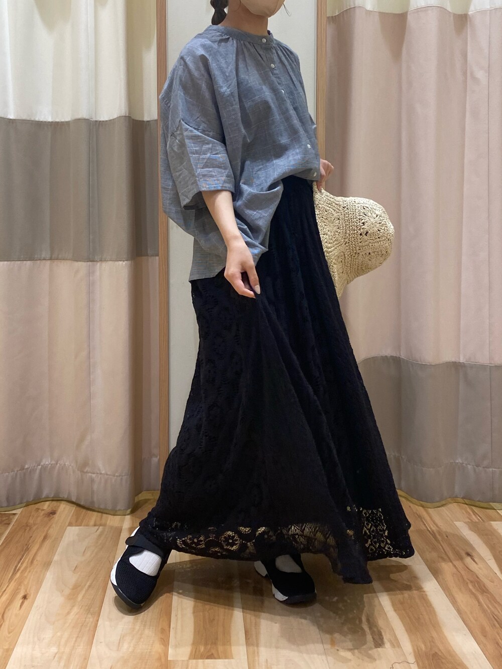 たにむらのシャツ/ブラウス「インドボイル前開きギャザーブラウス」を使ったコーディネート