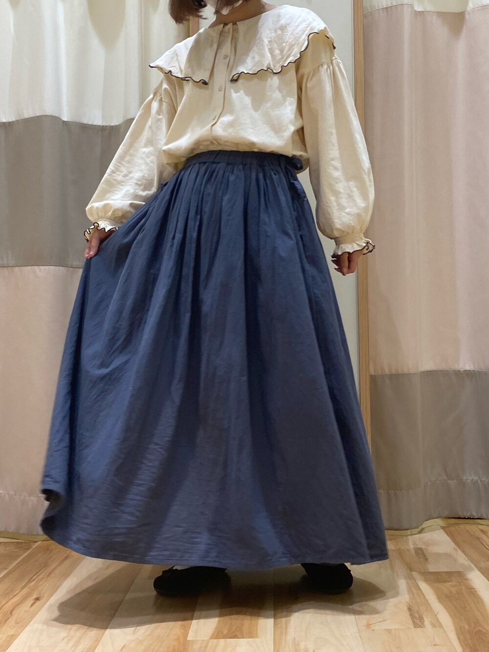 ご覧くださりありがとうございます🐰 出勤コーデです🐩💙 ビックカラーカットソーに脇リボンスカートで ガーリーコーデにしました🫶🫧 スカートはリボンでウエストの調整もできますし ボリュームのある形がすごく可愛いです☺️ 長さも足首くらいまでですごく履きやすいので 低身長の方にもおすすめです🪄