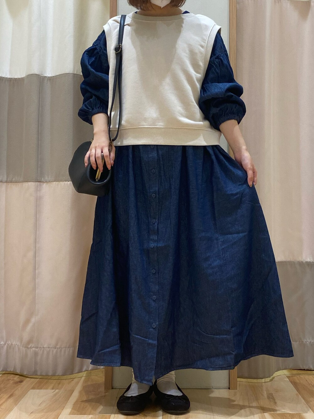 ご覧くださりありがとうございます🐰 出勤コーデです🐰♡! デニムワンピは肩落ちのゆるっとしたシルエットが可愛くて、 前後着なのでたくさん着回しができそうです🎶 ベストも丈が短めなのでワンピースに合いますし、 チュニックなどに合わせても可愛いです❣️❣️
