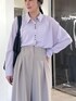 ●身長 162cm ●普段サイズ:トップス36/ボトム 38/シューズ 24cm 【サイズ感】 シャツ:身幅はゆとりがあり お尻にかかる着丈 袖丈は手の甲にかかる長さ ボトム:ウエストは手が入るゆとり 着丈はフラットシューズで甲にかかる 【コーディネートポイント】 春カラーでまとめたお出掛けスタイルです。 ボタンの配置がポイントになるシャツに、落ち感のあるワイドパンツをあわせました。 トップスはパンツにインして重心を高くみせています。
