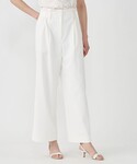 〈Ballsey〉ドライピケ タックワイドパンツは、分量感がありながらもきゅっと絞ったハイウエストなシルエットがすっきりとした印象に。 ショート丈のトップスを合わせて今年らしいバランスに仕上げました。