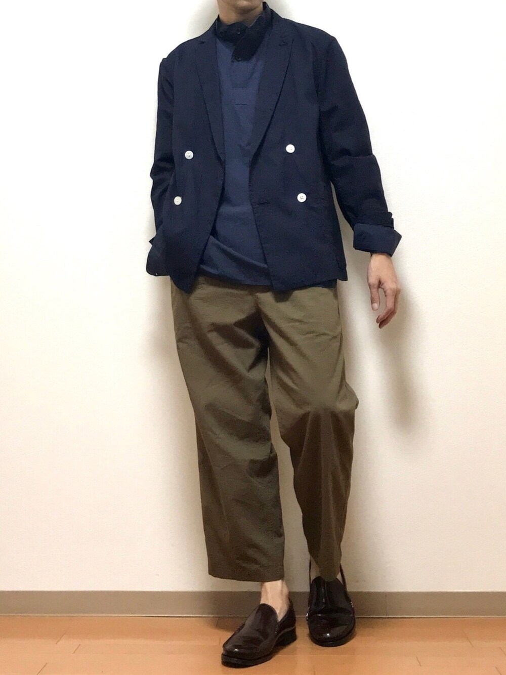 秋のゆったりトラッド風コーデ。 ---------------- ITEM DATA ・OUTER▶︎ #EDIFICE (sizeL) ・TOPS▶︎ #RAINMAKER (size48) ・PANTS▶︎ #UNIQLO U (size M) ・SHOES▶︎ #REGAL (size26cm)