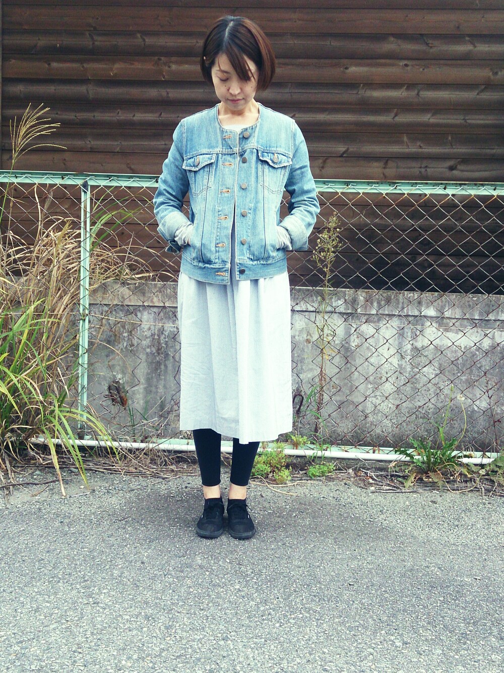 涼しくなってきたのでジャケットが着れますね。 ノーカラーのデニムジャケットです。 気に入っていてもう8年くらい着ています。