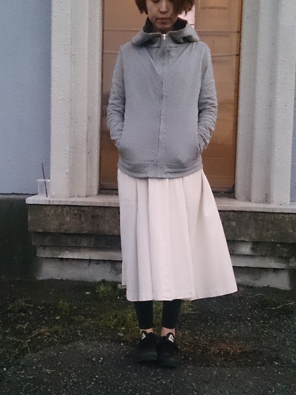 あ 頭が切れてしまった 笑 風が強くて髪もボサボサだったし ちょうど良い。 そして今頃UP。 このグレーのパーカーはセレクトショップでブランドの説明を 受けたのだが…忘れてしまった。 ただ触り心地がとても良かったから購入した。 今年も沢山着ると思う。