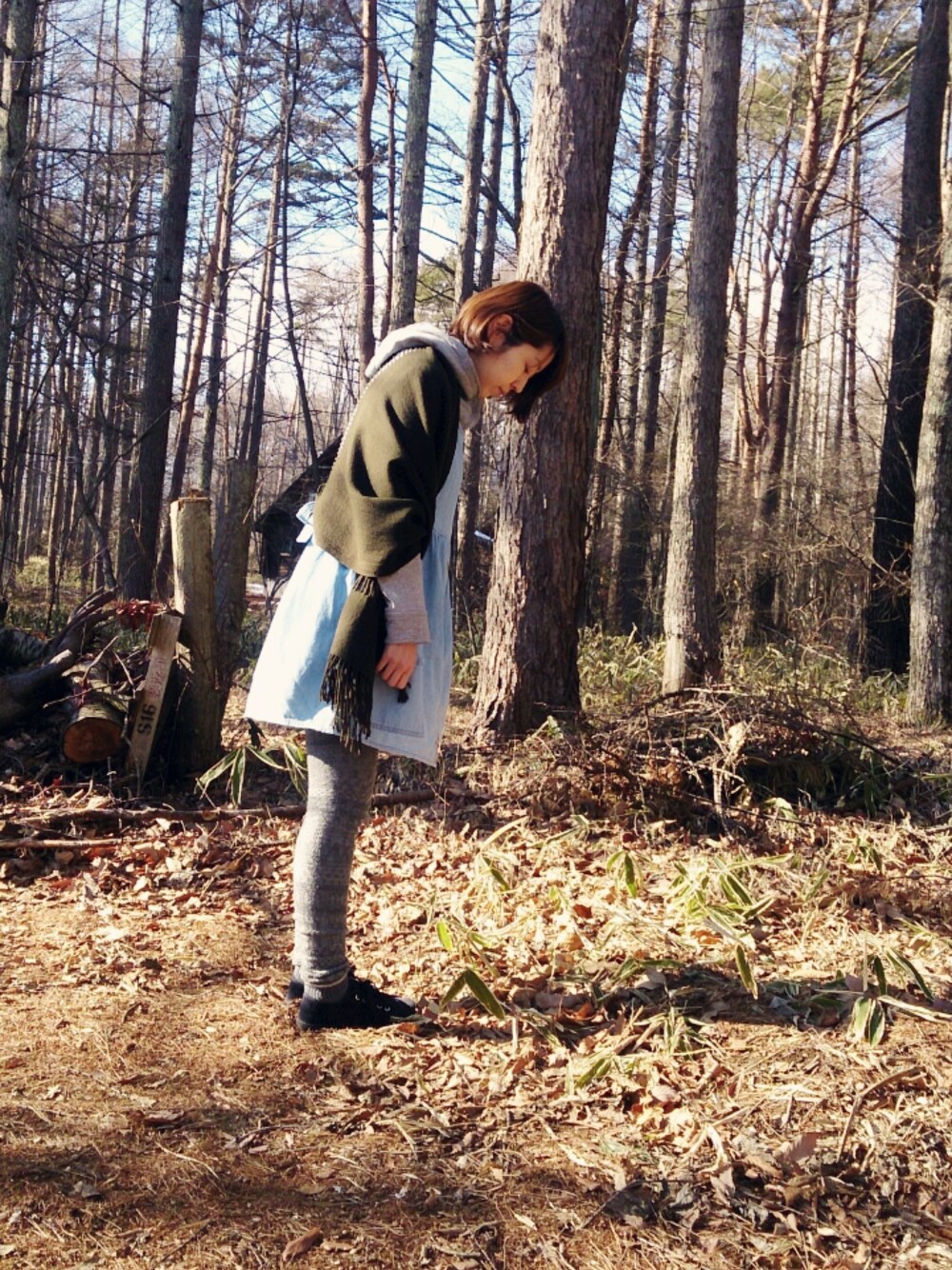先日 実家に帰りました。 このデニムワンピースは一時期沢山着てたのでかなり 色褪せてしまいました。外国の古着です。 ちょっと外国の田舎の娘的なイメージです 笑