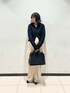 アウターがもこもこする今の時期におすすめコーディネートです! レース風で軽い印象ですがモールニットのトップスに、手持ちのあったか白カットソーを合わせて防寒も兼ねました。 パイル生地のふわっと感が珍しいバッグはオンオフ使えるサイズで、シーンを選ばず助かります。 ベロアカーゴパンツは光沢感が華やかなので、ブラックアイテムが増えがちな方にもおすすめです。 春先に明るいカラーのブラウスと合わせるのもガラッと雰囲気変わり、ロングシーズン楽しめます!