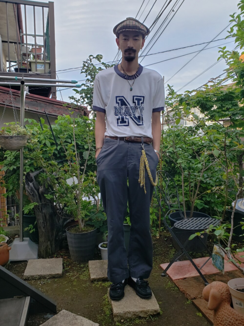 いつもたくさんのいいね、お気に入り、閲覧本当にありがとうございます。 今日の一枚。 ヴィンテージのリンガーTはusnavyの物。 もちろんUSAのアイテムです。 タイト×ワイドなアイテムを使い シルエットのバランスを取りました。