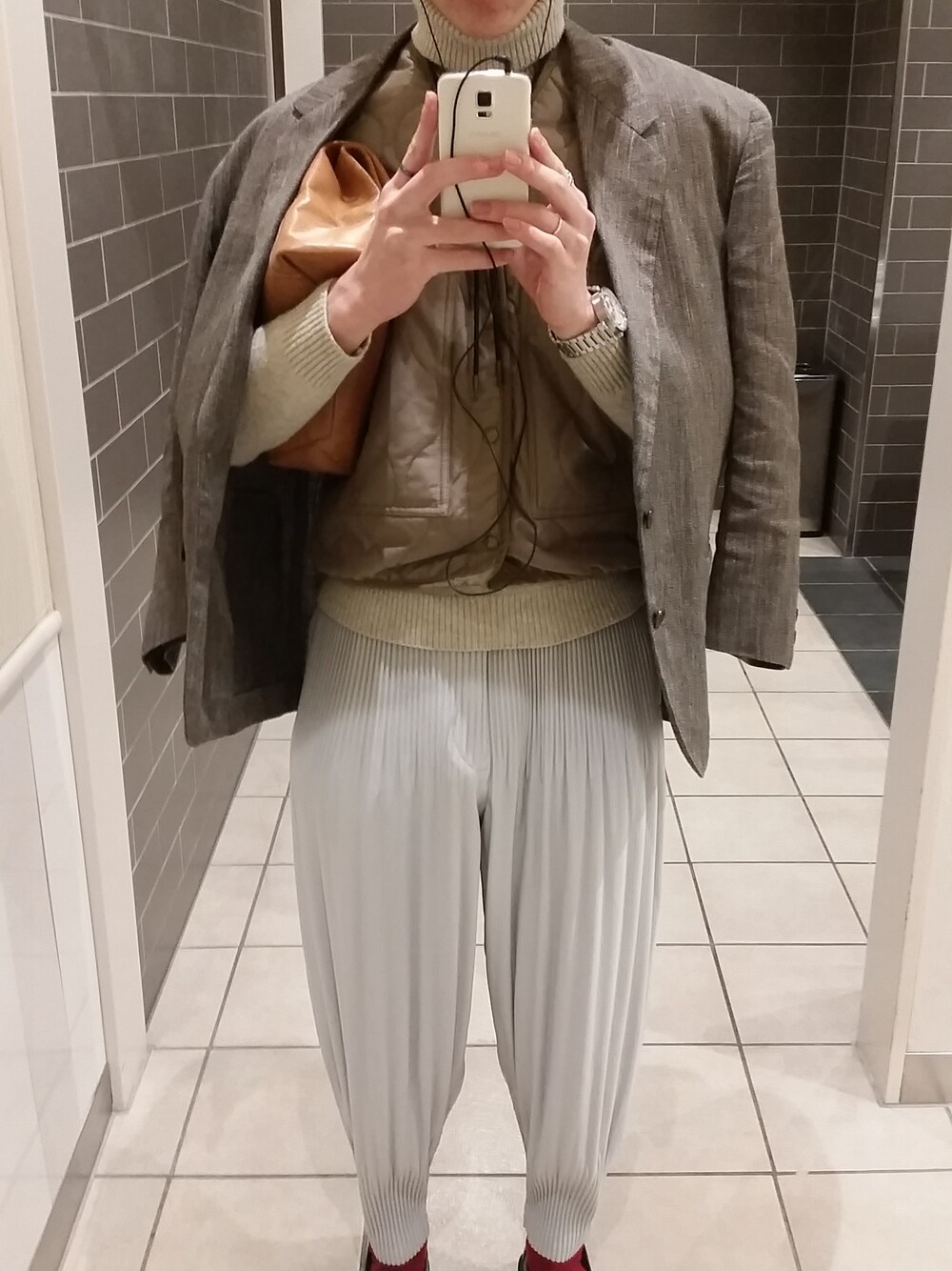グレー系のその他パンツを着用したメンズの冬コーディネートの1枚目の写真