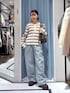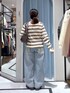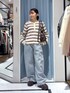 【トップス】→フリーサイズ 前後2wayで着れるボーダートップス!薄手のニットなので冬はインナーとして着たり、春先は一枚で着るのもオススメです👍 【ボトムス】→Sサイズ ポケットのレースデザインが今年らしいデニムパンツ! ワイドストレートのシルエットで身体のラインも拾いすぎず着ていただけます! 低身長の方でもSサイズ丁度よく履けますよ👌