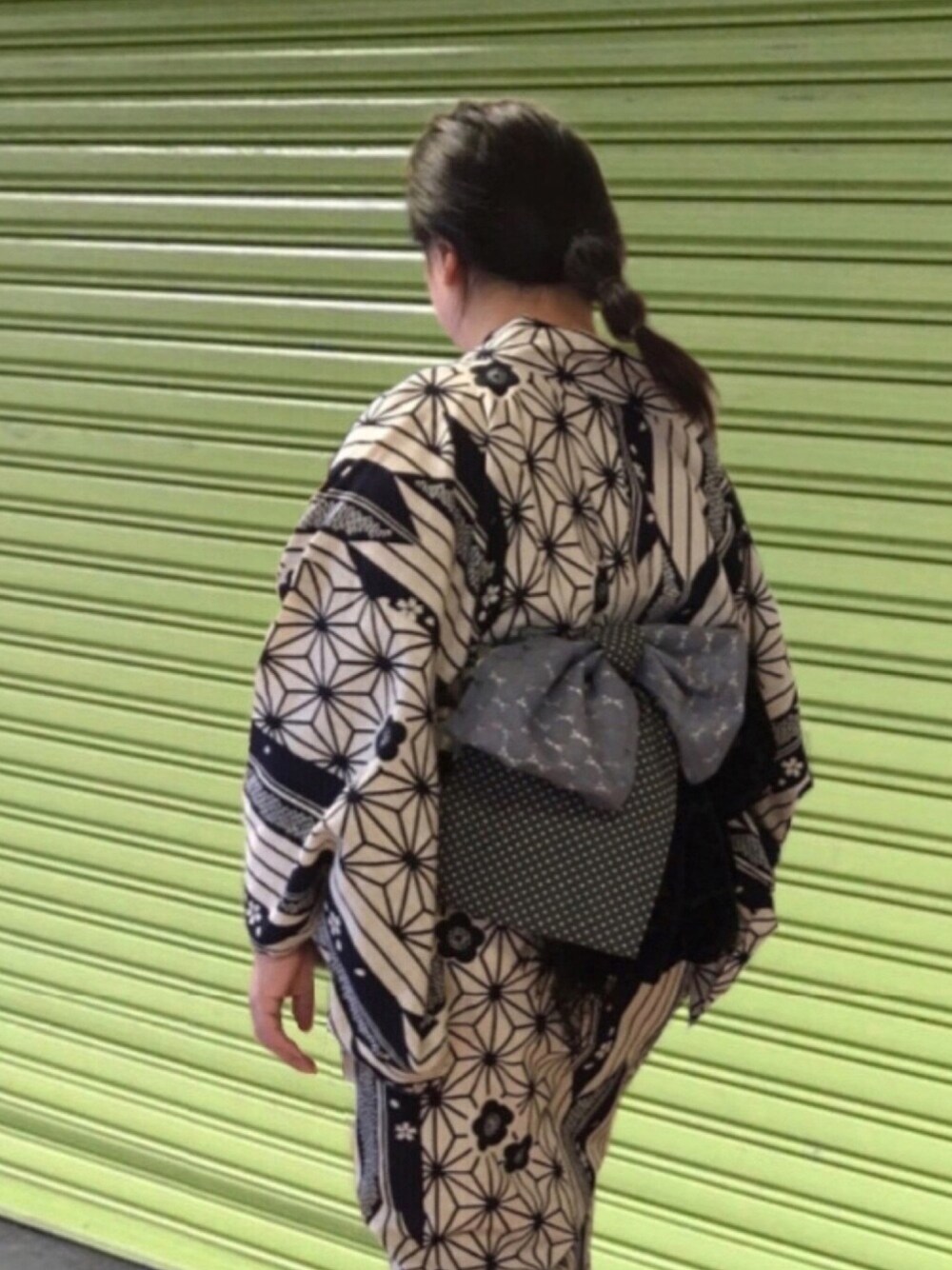 昨日の浴衣&半幅帯と同じです 後ろ姿はこんな感じでした👀 前と後ろ姿のイメージが違う‼️という例 この兵児帯は巻く位置によって 違う柄がでる帯なんです😏 前からは見えませんでしたがボリューム感を持たせる為に後ろの帯結びの下にストール🧣を付けました