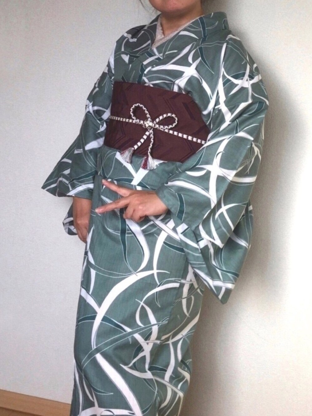 今日のピックアップタグが #ラブアンドピース2020ということを昨日の夜に気づき… 着物でピース✌️した写真を 投稿したいと思っていたので… 昨夜、突然着物を着るという奇行に走る💨💨 夏に着ていた浴衣を衿付きにして 着物のように着ています👘 簡単に言うと秋仕様にしましたー 衿をベージュ、帯をブラウンにして色で秋気分🍂 着物でピース✌️ってやっぱり違和感がありますねー😅 変だけど着物に合う✌️の正解がわからなかったので こんな感じです