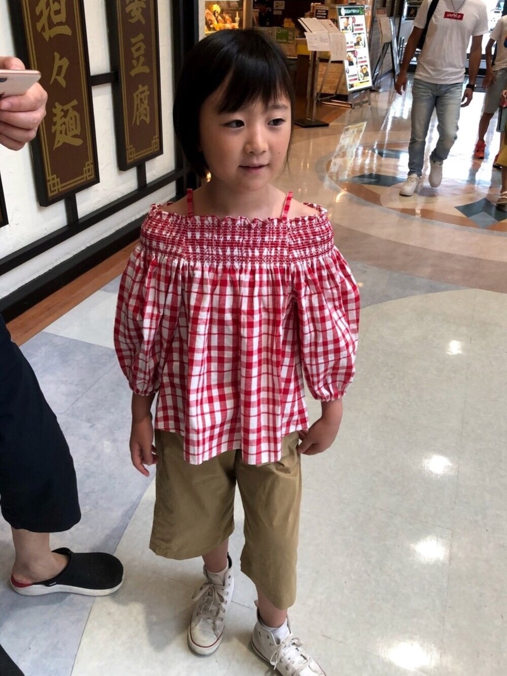 久々の投稿です(^-^) いつもいいね、お気に入りありがとうございますm(__)m ブランシェスさんのトップス、オフショルで可愛いです❤️ あ…パパの足が写っててすみません笑笑