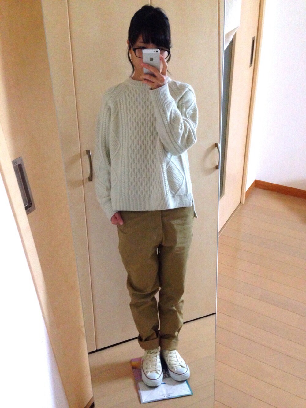 ワントーンコーデに挑戦。 すっぴんなのでダテ眼鏡です。 いいねなどありがとうございます。 嬉しいです(*^_^*)