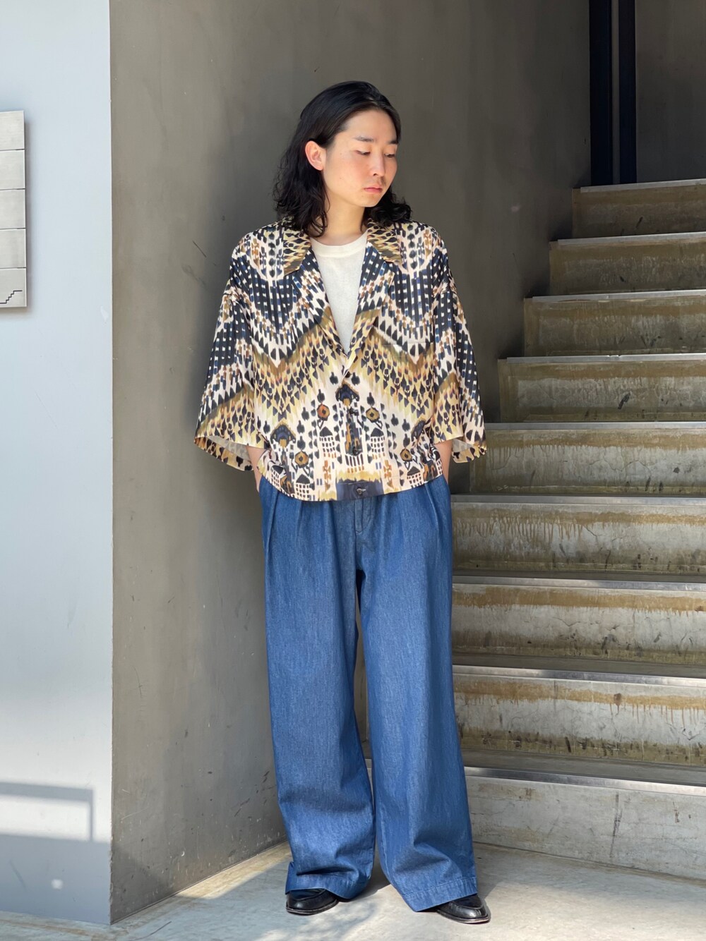 山崎慶太朗 GARDEN渋谷(GARDEN 渋谷店)のデニムパンツ「Toironier(トワロニエ) Denim Brooks Wide/デニムブルックスワイドパンツ」を使ったコーディネート