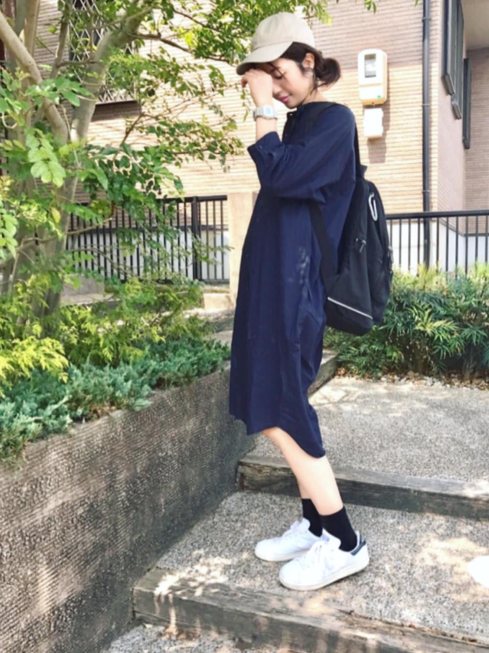 たろ☺︎のシャツワンピース「コットンダンガリーダブルポケットロングワンピース」を使ったコーディネート