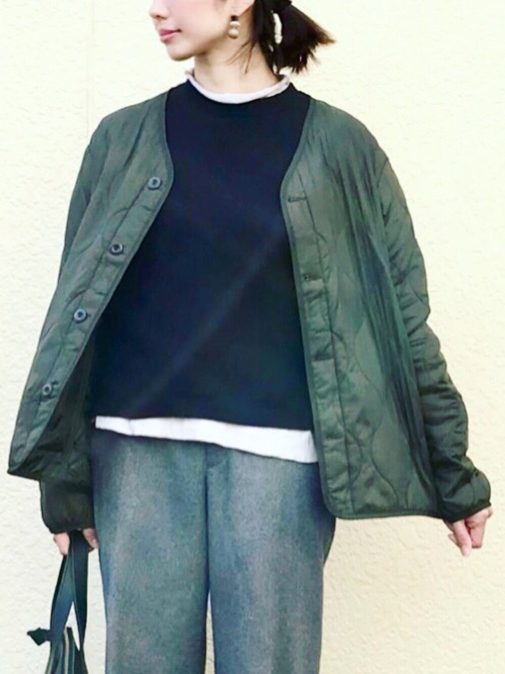 色味も地味で男っぽくなるから、 イヤリングは華やかに大きめ。 最近流行ってるフリルのブラウスは、 私に似合う気がしないので持ってません😅 似合う人が羨ましい... 薄くてくたっと柔らかいプチハイネックのニットをスウェットの下に着てます。 インスタ⇨@instaro__ ファッションのこと、日々のこと、 息子のこと、ときどき旦那くんのこと。