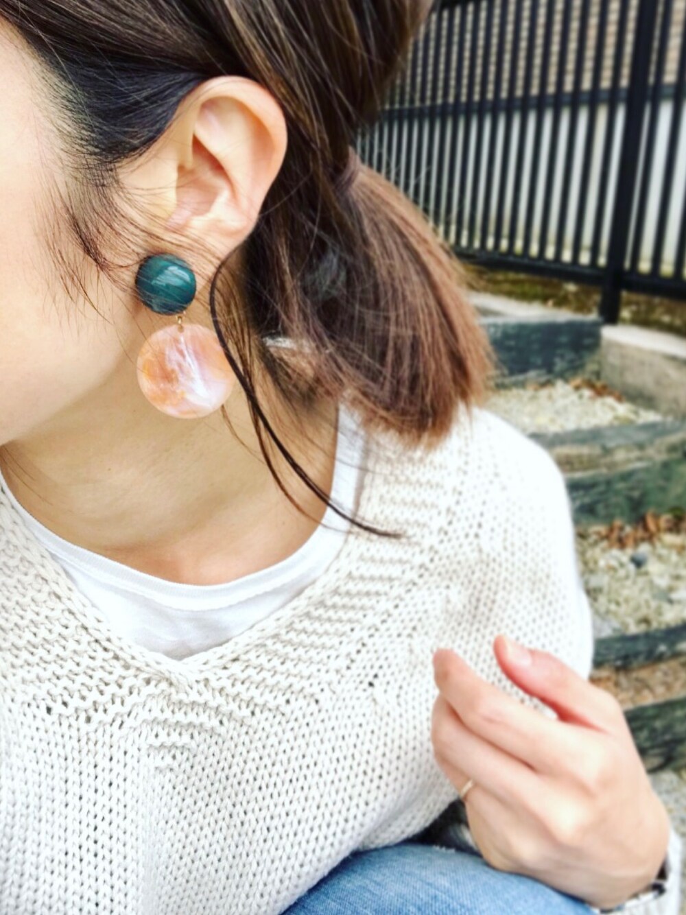 たろ☺︎のニット/セーター「ビッグシルエット Vネックニット ゆるニット ロングスリーブ バルーンスリーブ」を使ったコーディネート